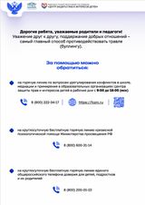 Участники подобных ситуаций могут обратиться за помощью к специалистам, в том числе на круглосуточную бесплатную горячую линию кризисной психологической помощи Минпросвещения России по телефону: +8 (800) 600-31-14. Также работают горячая линия по вопросам урегулирования конфликтов в школе, медиации и примирения в образовательных организациях Центра защиты прав и интересов детей